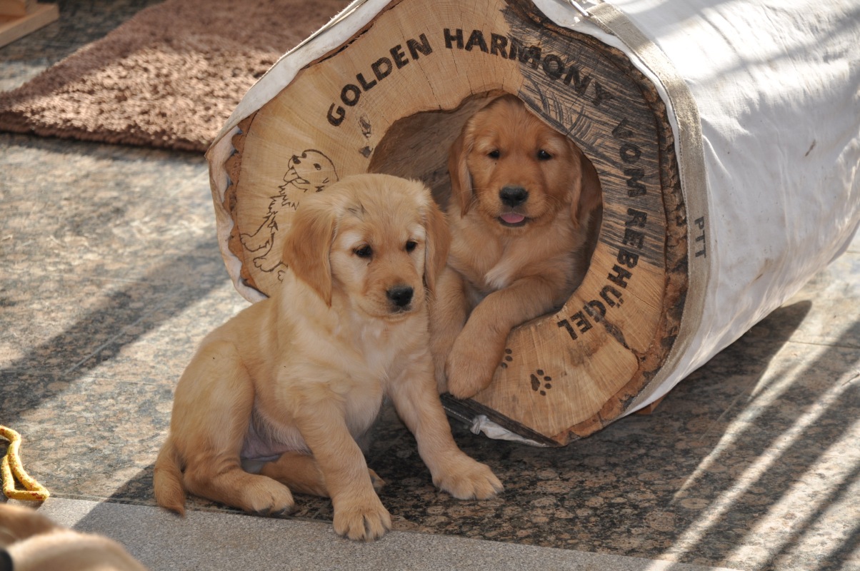 Aus unserem F-Wurf (Camillo de Manescale x Aileen Golden Harmony vom Rebhügel) wurden Fynn, Fion und Fly vorgeführt.